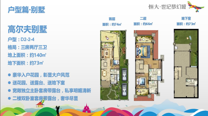 销售小秘书:恒大世纪梦幻城约130-155方高尔夫果岭别墅总价130万 送前后大花园 送地下室!