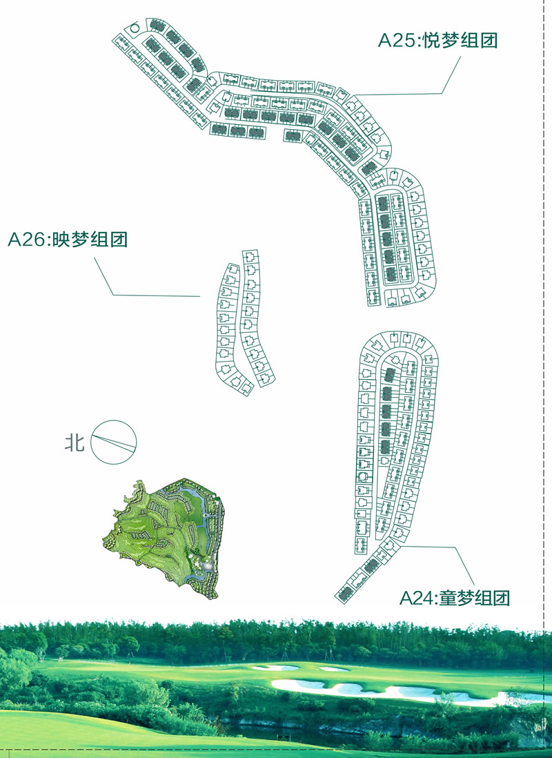 产品类型:建面约130-314㎡双拼、联排高尔夫别墅