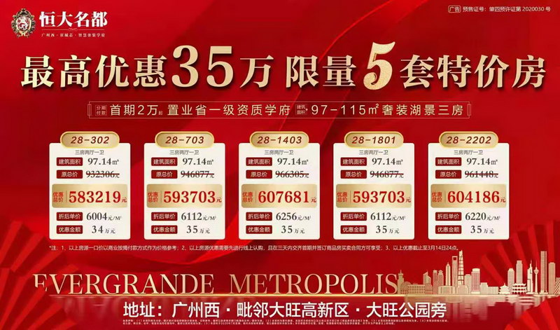肇庆恒大名都最新房价多少 【肇庆大旺高新区-恒大名都】臻享一口价,5字头好房,最高优惠33万,97-115㎡臻装三房热销中!